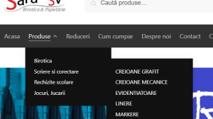 Puteti cauta produse navigand in meniul categorii de produse din bara de produse