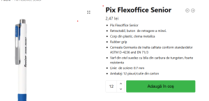 Din pagina fiecarui produs puteti seta cantitatea si il puteti adauga in cosul de cumparaturi. Anumite produse se vand la modul de ambalare (Ex: la pixul Flexoffice Senior unitatea de ambalare este cutia de 12 pixuri. La aceste produse in momentul alegerii cantitatii puteti selecta numai multiplul modului de ambalare: 12; 24; 48 etc.