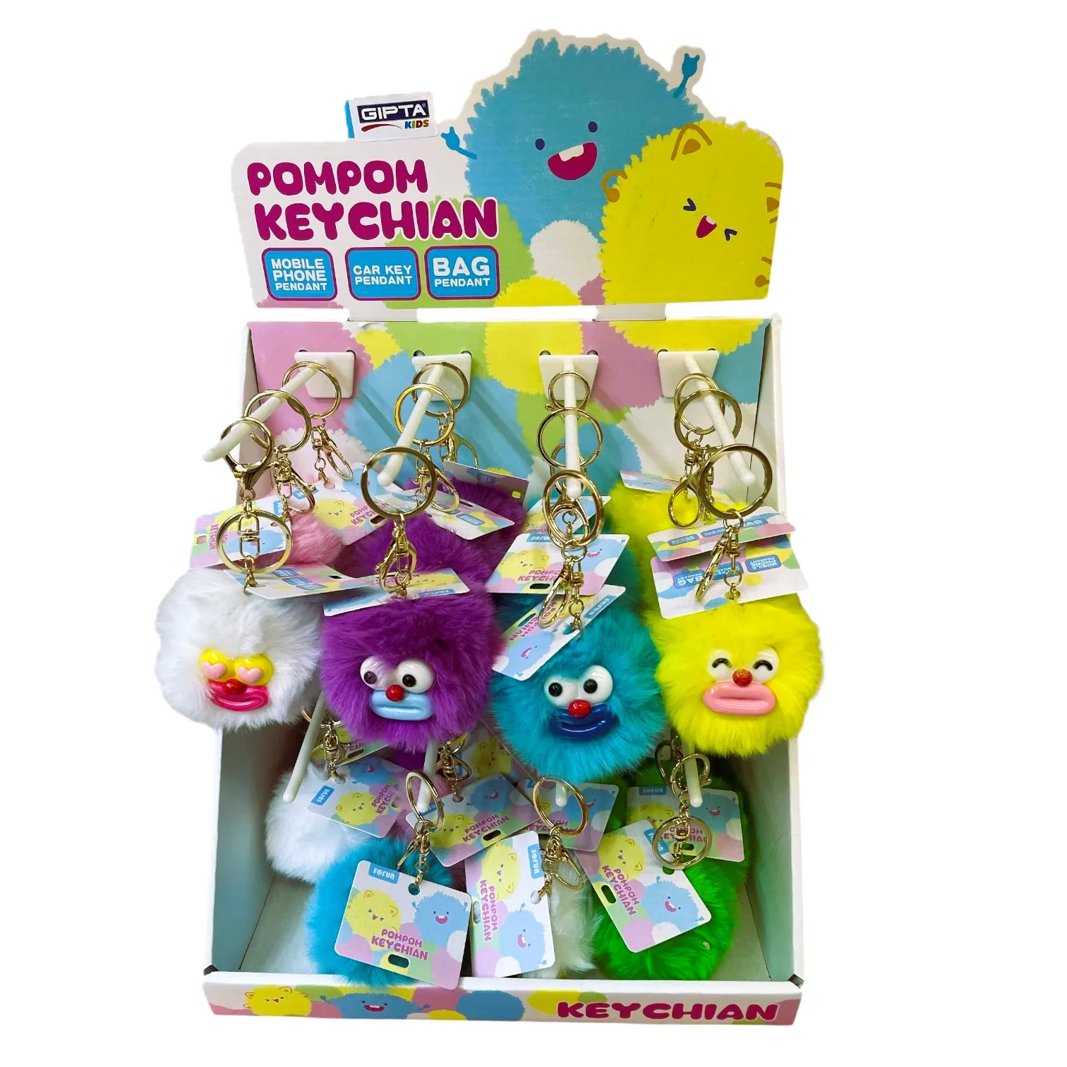 - Ambalat: 24 brelocuri culori diferite in stand din carton cu carlige din plastic