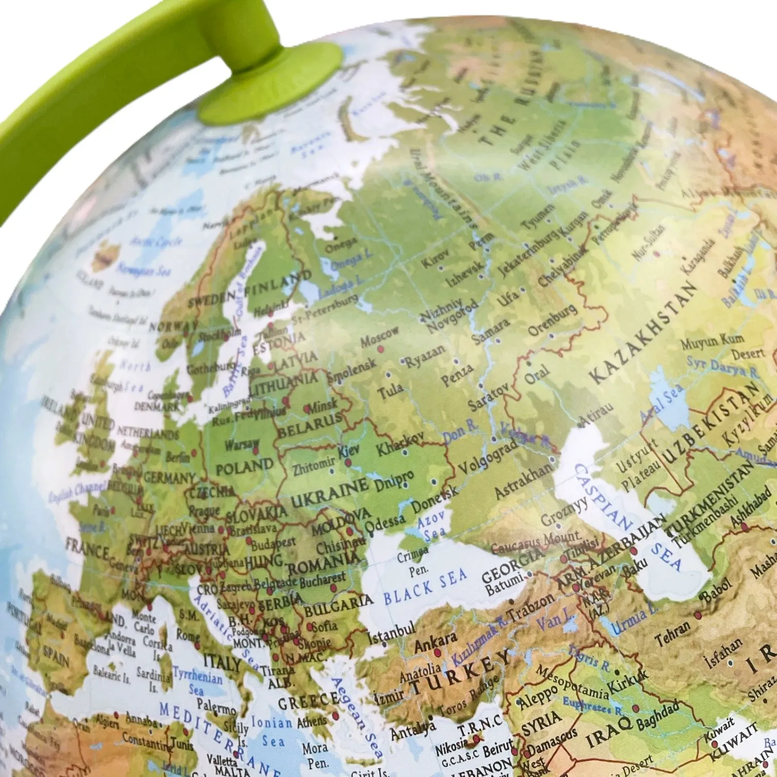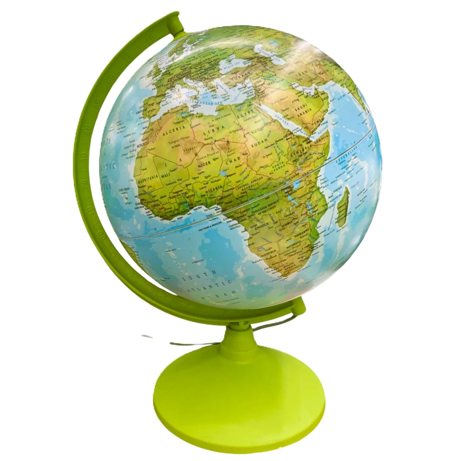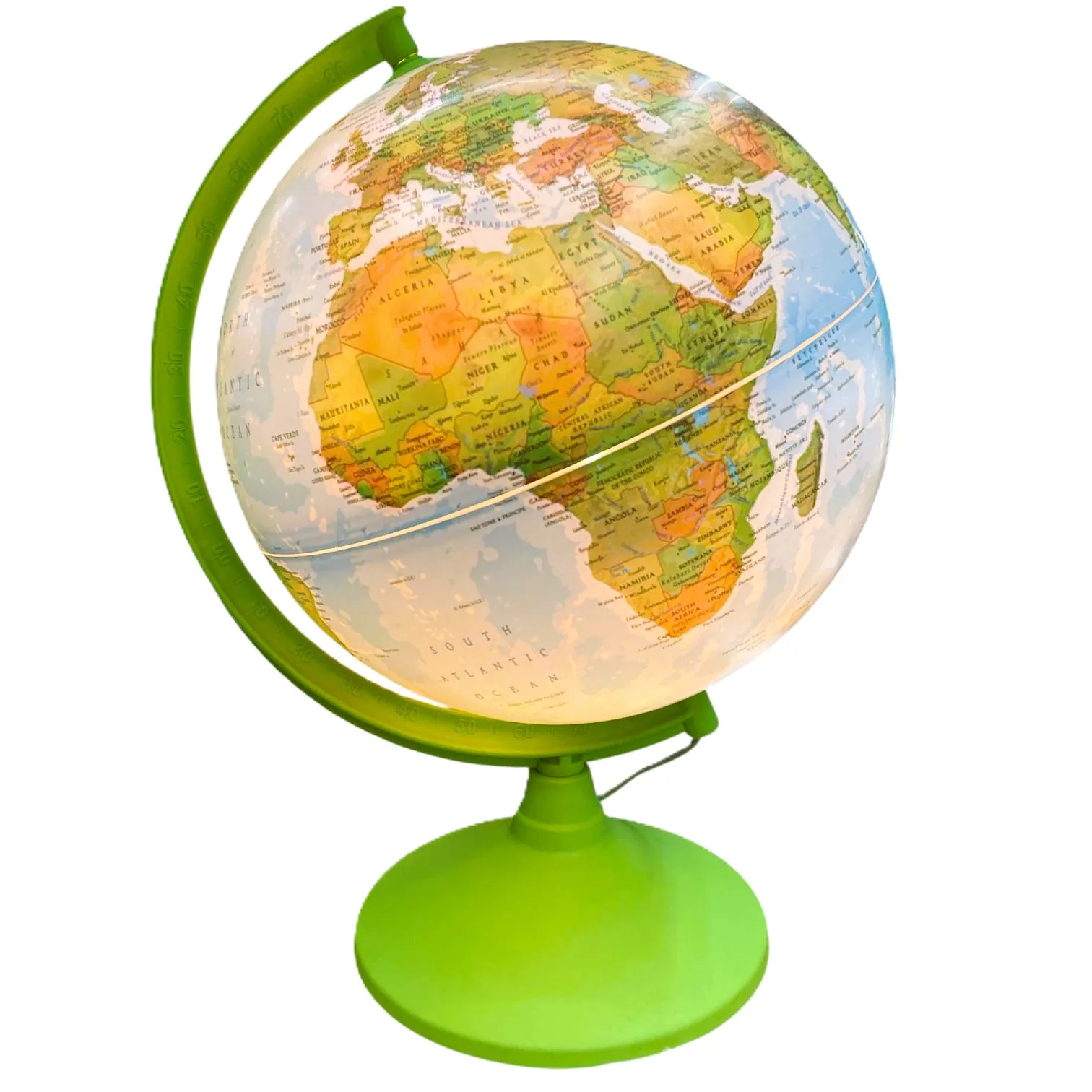 Globul nostru, care arată munții, câmpiile și râurile pământului, pe scurt, starea fizică a pământului atunci când lumina este stinsă, devine o „Sferă Politică” care arată țările lumii când i se aprinde lumina. Globul nostru, care este un material educațional excelent pentru elevi și profesori, este și un accesoriu elegant.