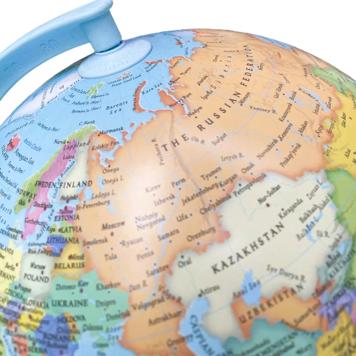 Puteți folosi „Globul Politic Iluminat”, care arată toate țările, granițele, capitalele, orașele importante, pe scurt statutul lor politic, atât ca un adevărat material educațional, cât și ca un accesoriu stilat.