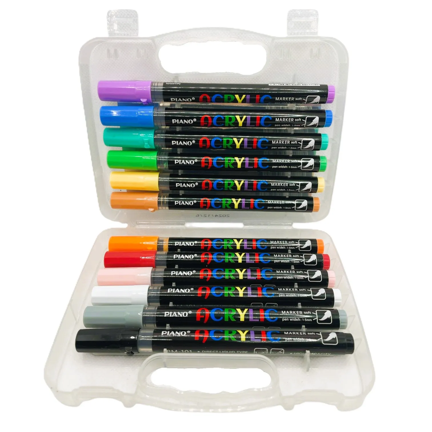 Marker Piano vopsea acrylica varf tip pensula 12 culori/set