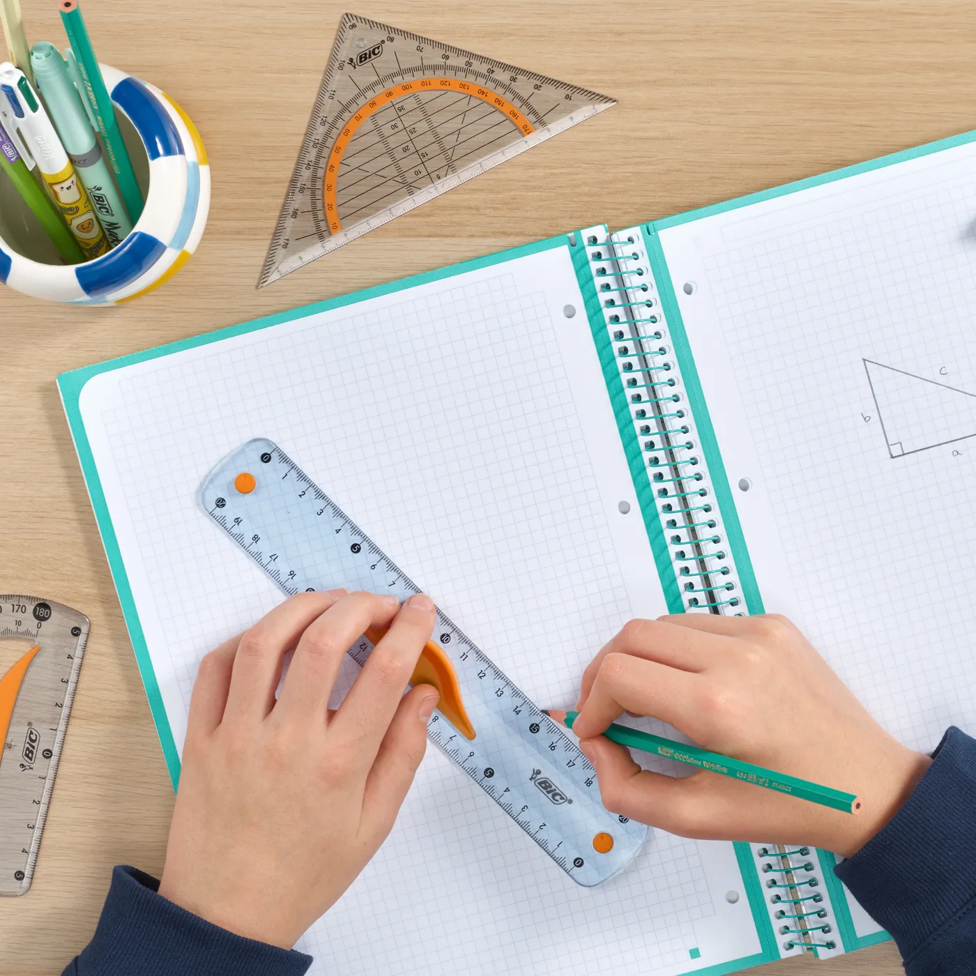 Gradele milimetrice pot fi citite în ambele direcții, astfel încât vei excela întotdeauna la temele de măsurare și desenare a formelor geometrice.